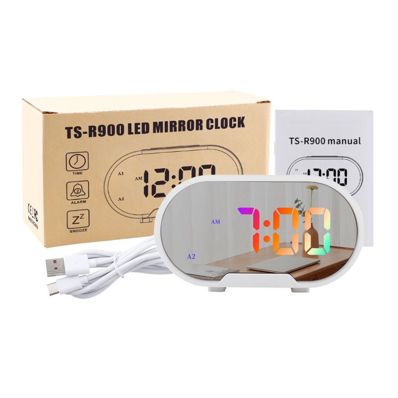 5.5 inch simple led RGB display time and 2 group of alarms with USB charger ports