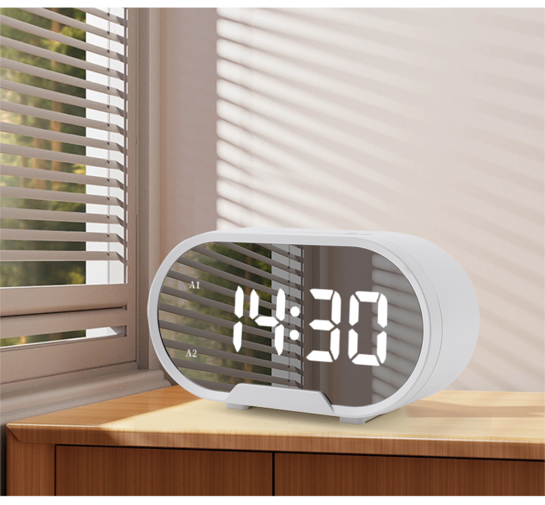 Digital alarm clock led mirror electronic clock with stepless volume adjustment desk clock