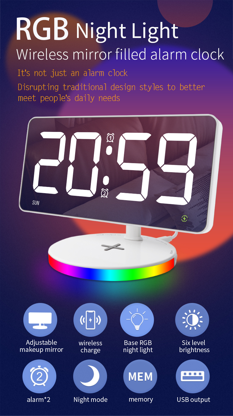 Table alarm mirror clocks led ...