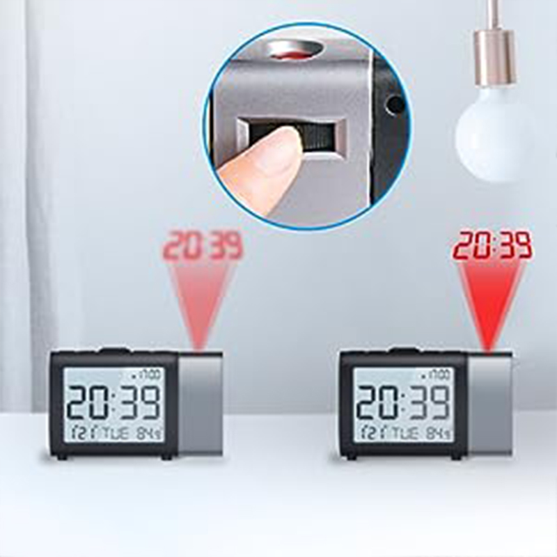Projection alarm clock with LCD display time and date snooze function weekend mode