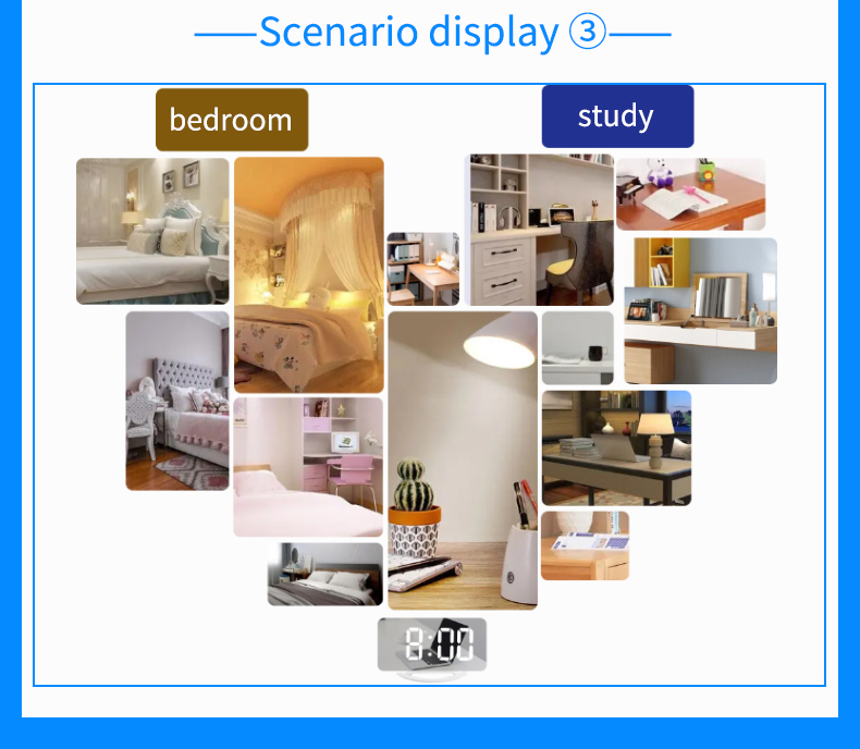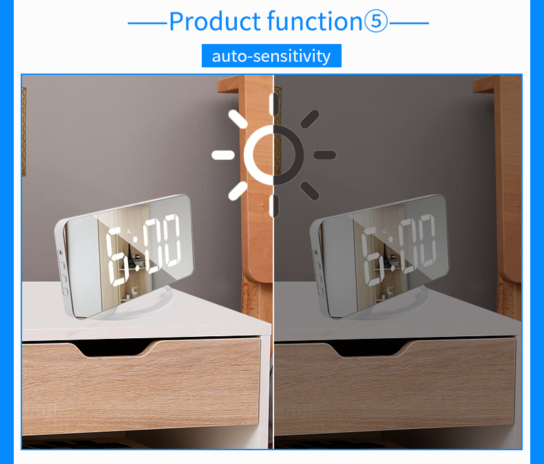 Mirror vibration alarm clock with snooze mode wireless vibrate alarm clock