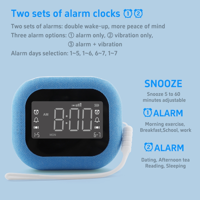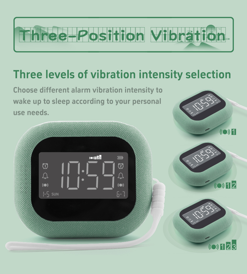 Portable vibration alarm clock with white noise under pillow for heavy sleepers
