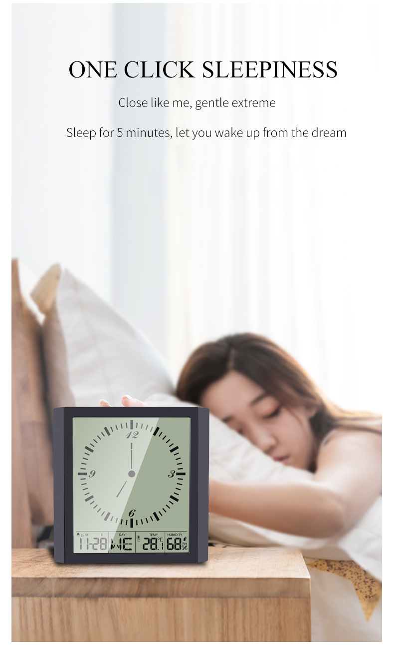 1. Analog clock with calendar, display time, date, week, indoor temperature and humidity;