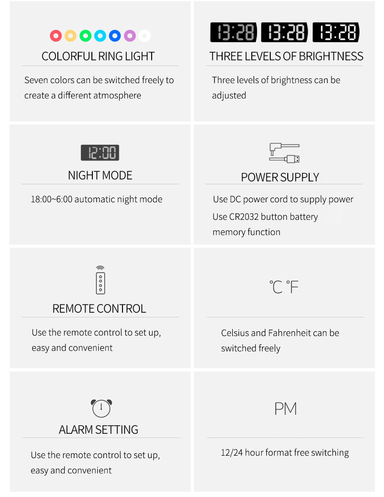 LED RGB clock-round Moodlight 7 color night light Digital Wall Clocks
